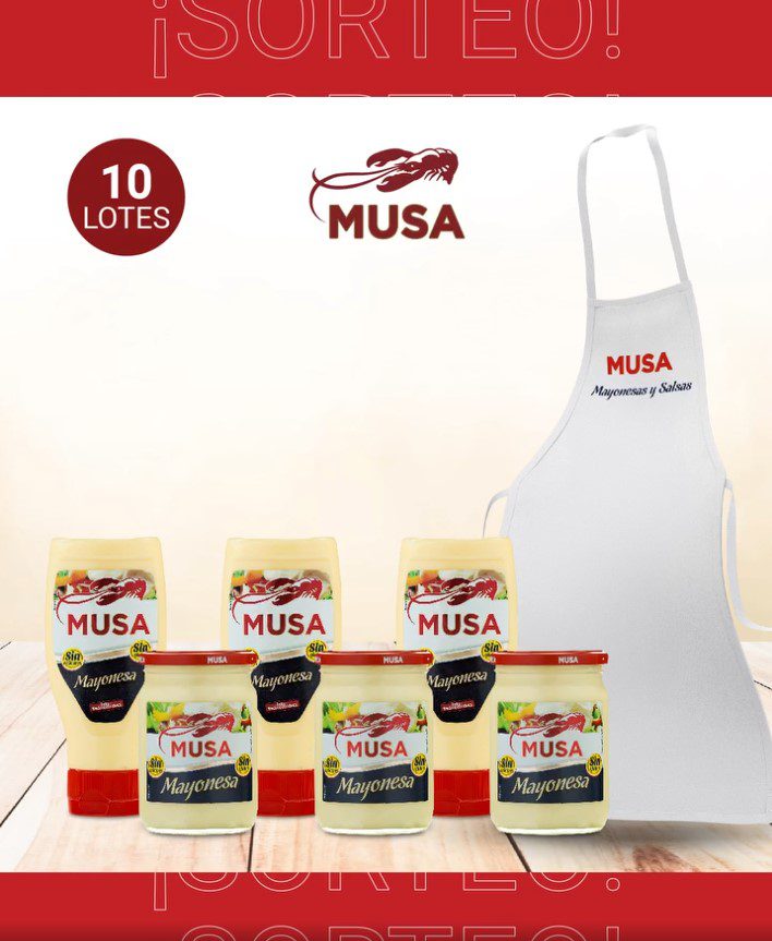 En esta oportunidad, el Sorteo de Mayonesa Musa, te brinda la posibilidad de GANAR 1 de 10 Lotes con 3 Botes de Mayonesa Musa boca abajo, 3 Botes de Mayonesa Musa cristal y 1 Delantal; solamente necesitas: