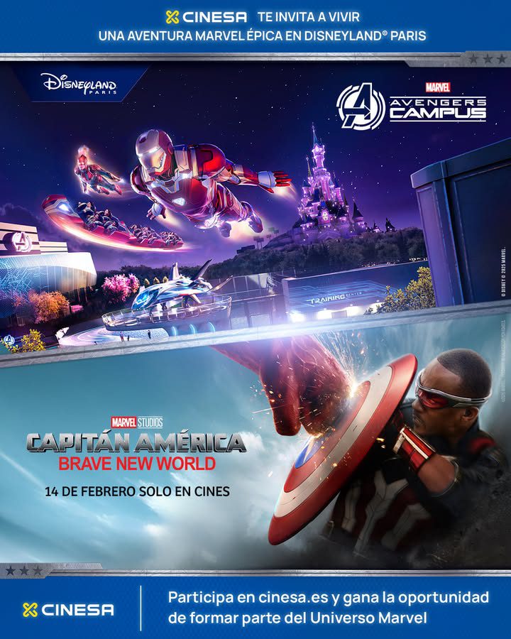 Cinesa inició su Sorteo Capitán América: Brave New World, en el que te puedes GANAR 1 Viaje a Disneyland Paris (2 noches en un Hotel Disney + Entradas para los 3 días a los 2 Parques Disney + Vuelo de ida y vuelta en clase económica desde Madrid); si quieres participar deberás: