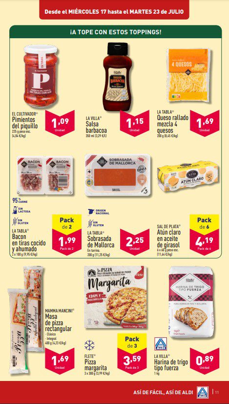 Los supermercados Aldi dieron a conocer su folleto semanal Así de Fácil, Así de Aldi, con sus ofertas válidas del 17 al 23 de julio de 2024 (algunas ofertas comienzan a partir del miércoles 17, otras del sábado 20 y algunas más del lunes 22), en el que encontrarás Los Top de la Semana, Súper Precio de la Semana, Bajadas Permanentes, Productos de Marca Original Aldi, hasta un 50% de descuento, la 2º unidad al 50%, Aún Más Bajo, Precios Así de Aldi, Ofertas, Formatos XXL y Precios especiales; las ofertas son válidas en artículos participantes (debes consultar la vigencia en cada página); aquí te dejo el folleto completo: