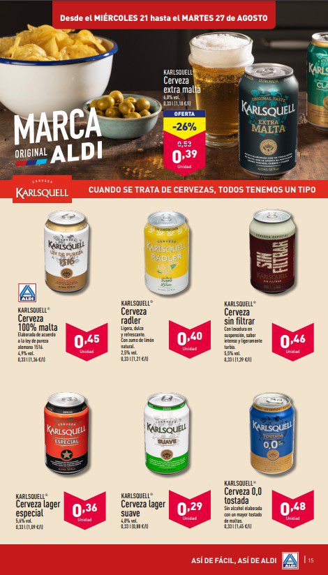 Los supermercados Aldi dieron a conocer su folleto semanal Así de Fácil, Así de Aldi Hemos Bajado Aún Más el Precio de 450 Productos, con sus ofertas válidas del 21 al 27 de agosto de 2024 (algunas ofertas comienzan a partir del miércoles 21, otras del sábado 24 y algunas más del lunes 26), en el que encontrarás Los Top de la Semana, Súper Precio de la Semana, Bajadas Permanentes, Los Top de Bazar, Productos de Marca Original Aldi, hasta un 49% de descuento, la 2º unidad al 50%, Aún Más Bajo, Precios Así de Aldi, Ofertas, Formatos XXL y Precios especiales; las ofertas son válidas en artículos participantes (debes consultar la vigencia en cada página); aquí te dejo el folleto completo: