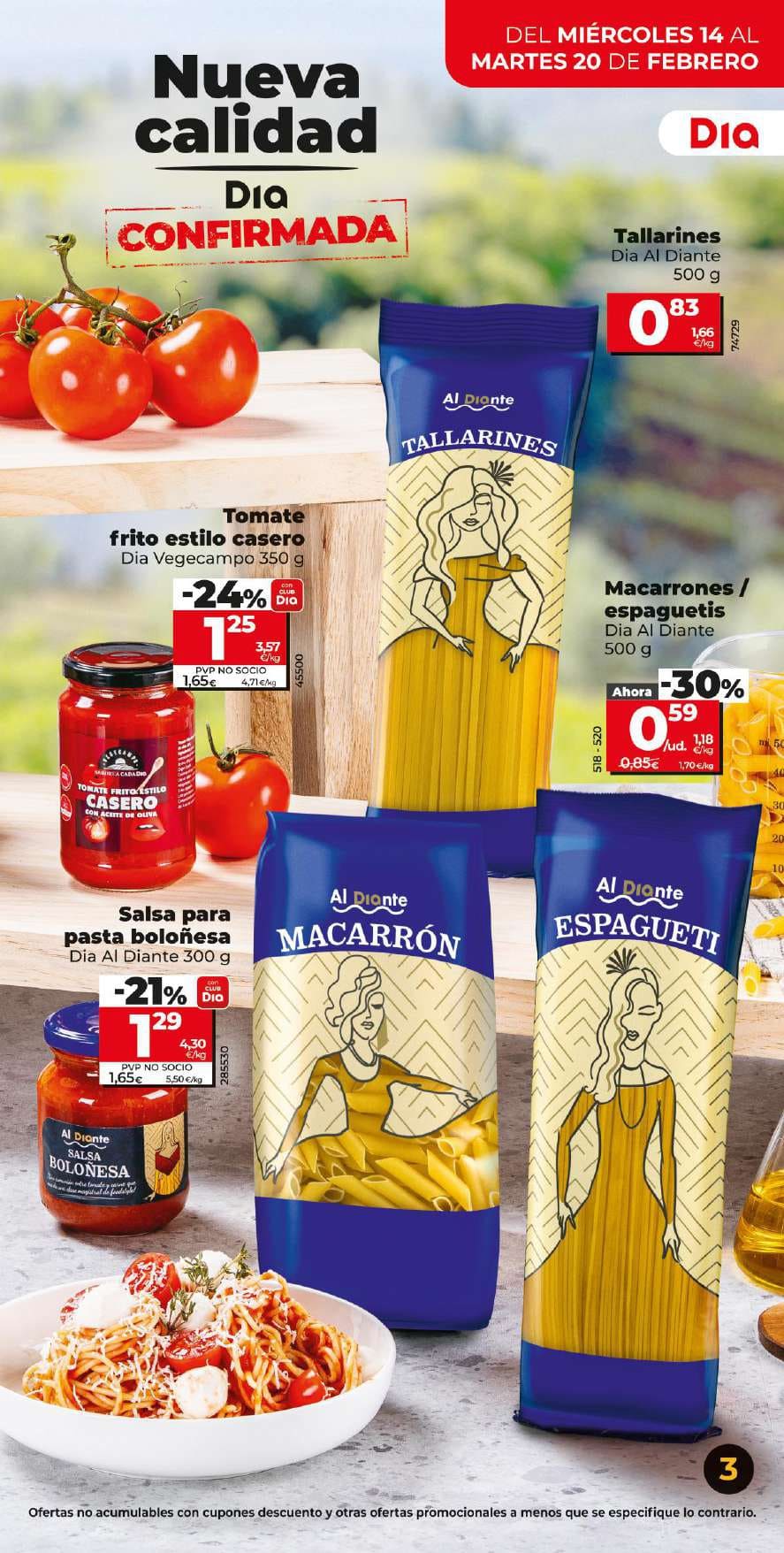 Te comparto el folleto “Nueva Calidad DIA Confirmada” de los supermercados DIA, en el que encontrarás un 3×2, un 50% ó 70% de descuento en la 2ª unidad, Tu Precio, Descuentos especiales en la compra de determinadas unidades, Ofertas especiales para Socios de Club DIA, hasta un 37% de descuento y Precios especiales; la promoción aplica en productos seleccionados, es válida en su sitio web dia.es, en su App (que puedes descargar en éste enlace: dia.es/l/clubdia) y en sus sucursales físicas y tiene una vigencia del 14 al 20 de febrero de 2024.