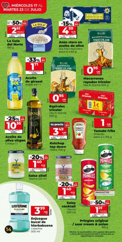 Las ofertas no son acumulables con cupones de descuento y otras ofertas promocionales a menos que se especifique lo contrario. Si aún no eres Socio Club DIA, te puedes registrar en su sitio web dia.es.