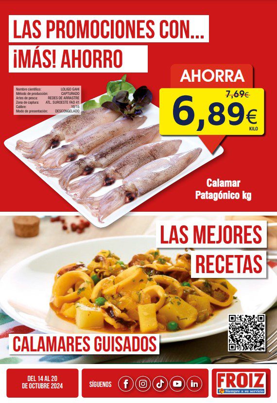 Apenas estoy viendo el folleto Las Promociones con… ¡Más! Ahorro de los supermercados Froiz, que contiene sus ofertas válidas del 14 al 20 de octubre de 2024, y en el que encontrarás Precios especiales; las ofertas aplican en productos seleccionados, y son válidas tanto en su tienda en línea https://www.froiz.com/ como en sus sucursales físicas.